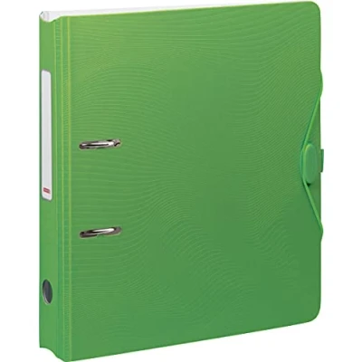 Made from strong and durable polypropylene 2.75" Back: Thanks to its flat back, the unfolded backrest stays perfectly on your table, making it ideal for school, leisure and office With pen loop, elastic closure, pocket in front cover and flat back with labelling label Filing mechanism with mounting brackets, rado eyelets Green