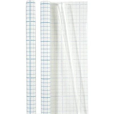 Book cover film in roll form with 60 µm thickness Length x width: 1 m x 0.45 m With grid lines on the peel side for precise, economical cutting Made from transparent polypropylene Self-adhesive, acid-free