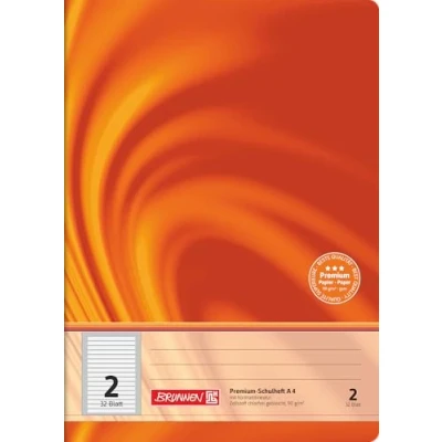 Brunnen Premium exercise books DIN A4, 32 pages (Double), 1 piece Ink resistant 90 g/m² writing paper for comfortable writing; Rounded Corners Extra Strong High Gloss envelope Type 2 ruling, lined, 2nd Class With an environmentally stamp FSC. With large labelling area at the front; kit includes overview and class mirror on the inside