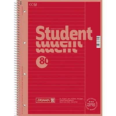Brunnen Colour Code 1067925123 Notebook/Notepad Student A4 liniert (Type 25) 90g/m² 80 Pages, Red