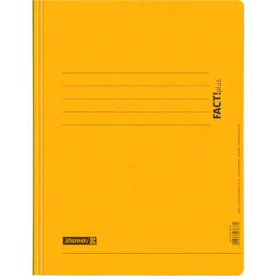 AmazonBrunnen FACT!plus A4 File Folder Made of Thick Chipboard Cardboard Pack of 1 High quality pressed board 375 g/m², 0.4 mm thick. Both official filing and commercial stapling possible. With labelling area on the front. Colour: yellow.