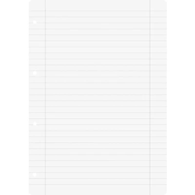 100 sheets Format: A4, with rounded corners Lined with margin line inside and outside, Lin. 27, 70 g/m², quality paper, 4-hole punching Colour: white