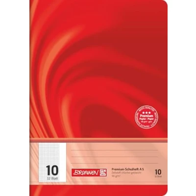 Brunnen Premium exercise book DIN A5, 32 sheets (double book), 1 piece Ink-proof 90 g/m² writing paper for high writing comfort Line style 10, squared, with margin Awarded the FSC environmental seal With large labelling field on the front; contents overview and class mirror inside; rounded corners; extra strong glossy envelope