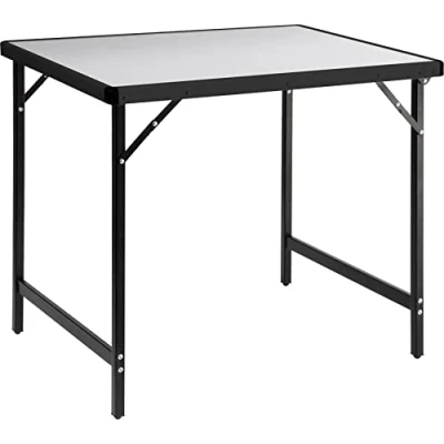 Aluminium shelf and painted steel folding legs Compact and easy to carry, weighs 4.2kg Quick and hassle-free installation Long-lasting use thanks to the use of high-quality materials Dimensions: open table 80 x 60 x H 71 cm, closed 80 x 60 x 5 cm