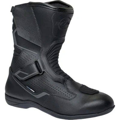 MotorunBüse B450 Touring Boots Black Features: Shin, ankle, toe, heel and gear lever reinforcement Comfort padding on the heel and instep Perforated inserts for optimised breathability Reflector on the heel Material: Microfibre Breathable mesh lining Membrane: 3-layer climate Membrane Waterproof and windproof, breathable Shaft height: Approx. 22 cm (size 44) Sole: Reinforced, cut-resistant rubber sole Resistant to oil and Petrol