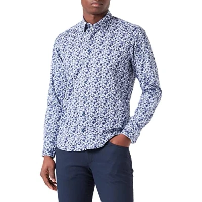 bugatti Men's Button Down Shirt, Marine 390, S