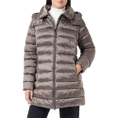 Tailored quilted jacket in a recycled, feminine iridescent nylon quality With sporty quilted pattern, smooth stand-up collar and removable hood Equipped with renewable resource-based Sorona fibre Contrasting details in the interior With the Respect Nature function