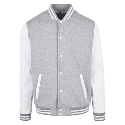 Build Your Brand Men's Basic College Jacket, Heather Grey/White, S