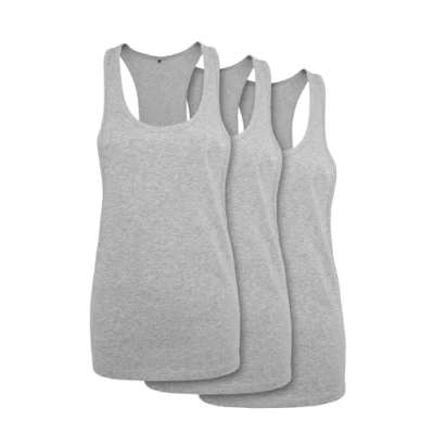 Ladies Loose Tank 3-Pack Modern cut: long cut with racerback and deep armholes, these tank tops offer a flattering fit for any figure High-quality workmanship: the careful manufacturing with double seams on the hem promises durability and can withstand everyday use Customisable: the neutral size label makes the tops ideal for personalized designs, perfect for custom expressions or branding Comfortable material: made from soft cotton single jersey, they offer a comfortable feel, ideal for everyday use Sustainably produced: made in a FAMA certified factory, these tank tops guarantee not only quality, but also ethical production standards