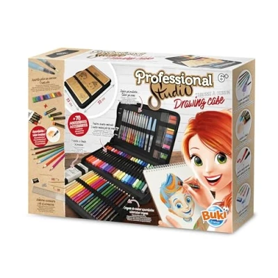 A pencil case with all the contents needed to draw An A4 drawing pad of 35 thick sheets 160gm Practical: the block attaches to the pencil case thanks to the elastic bands for easy carrying! From 6 years old, Manufacturer: BUKI France