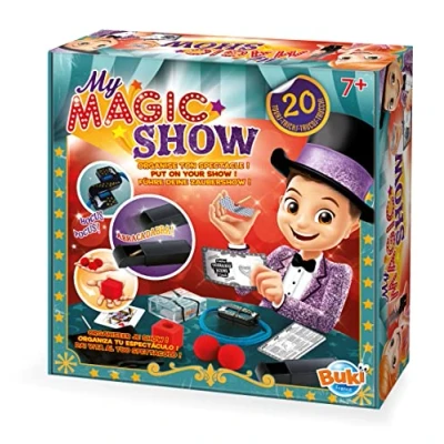 A magic set with everything you need to become a real magician! Comprises 20 magic tricks that are explained step by step in the instruction sheet. The 24 cards provide the child with different scenarios for putting on a magic show. Instruction sheet with colour illustrations and 24 illustrated cards. Recommended age: 7 years +, Manufacturer: Buki France