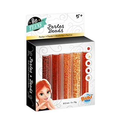 An assortment of 5 colours of beads. Each tube contains 15g of beads. The beads have a diameter of 2 mm Suitable for ages 5 and above., Manufacturer: BUKI France
