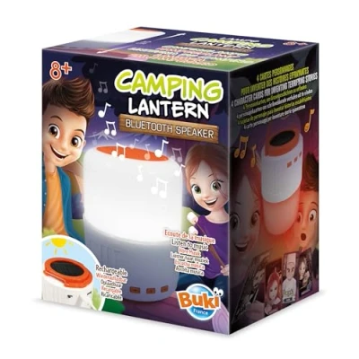 A 20cm waterproof rechargeable camping lantern Bluetooth Speaker Charges during the day with the solar panel USB port to charge your smartphone Red light mode to tell scary stories. Includes: three stories inspired by horror stories, Manufacturer: BUKI France