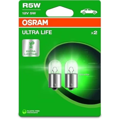OSRAM Ultra Life R5W: Up to four times longer service life Extra long lifespan: up to four times longer life compared to standard auxiliary lights Higher durability: Longer change cycles, increased reliability and more comfort Wide range of products: suitable for the most common auxiliary light types The robust lamp with up to four times longer service life Environmentally friendly, plastic-free packaging with usual quality.