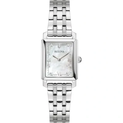 This Bulova women's model adds a new style to the already impressive Sutton collection. High quality silver stainless steel bracelet, 19 cm long and 13 mm wide, with deployment clasp. Case measurement: 21 x 25 mm, case height: 7 mm, case colour: silver, dial colour: mother-of-pearl Waterproof: 3 bars -Weight: 64 g The watch comes in an original gift box and has a 2 year warranty