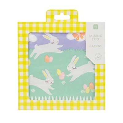 With Easter bunnies hoping around a spring meadow, these Easter napkins will please both kids and adults at your Easter table OCCASION – With their pastel bunny rabbit design, use these paper napkins on your Easter table or as Easter napkins to serve hot cross buns and easter egg chocolate! SIZE - These Easter napkins measure 33cm x 33cm unfolded. Each pack contains 20 paper serviettes that are recyclable ECO-FRIENDLY - Instead of using plastic packaging we've included an extra napkin at the front of pack to keep the others clean. After use, both the disposable napkins and their packaging are recyclable EASTER - Shop our Easter decorations, tableware and craft kits for kids including make your Easter cards and egg decorations. These can be found in our Amazon store, Manufacturer: Talking Tables