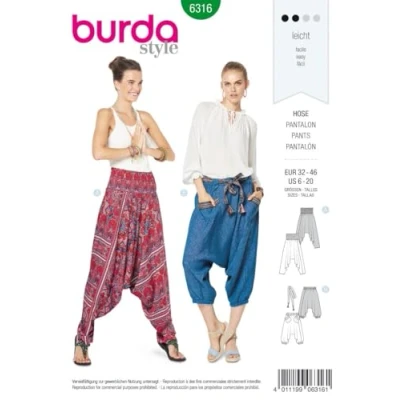 Burda Style Sewing Pattern B6316 Misses' Harem Trousers