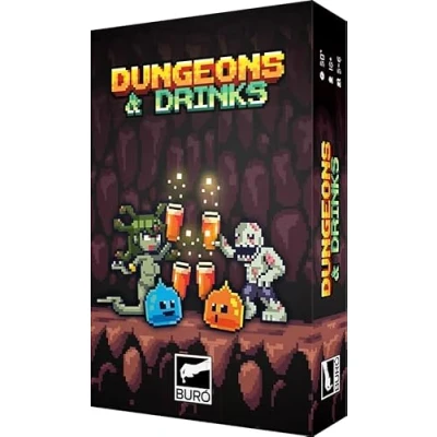 "Dungeon & Drinks is a game for 2 to 6 players in which you are a drunken hero, who delves with his friends into a dungeon full of dangers and monsters that do not bother anyone. In each game, players compete to see who is the best by killing helpless monsters. Something that would be very simple... if the other players didn't bother you to stop you from fulfilling your plans. The game ends when, after an "epic" combat, one of the players manages to kill the dungeon boss. At that time, whoever has the most points wins!", Manufacturer: Buró de Juegos