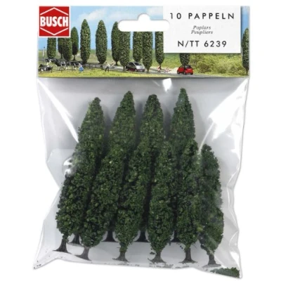 Busch - 10 poplars 75/95 mm N/tt (Bu6239) ( 4001738062397) comes from Busch. Category - Spoorweg Landschap, Number of pieces: , Difficulty Level: , Minimum age years, Type product: Landscaping, Subtype: , Scale: N - 1:160, Assembly time (hours), , Colour - , Dimensions -75/95mm, Manufacturer: Busch