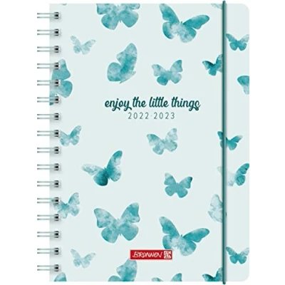 1 page = 1 day, Sat. + So. on one side Six languages: German, English, French, Spanish, Italian, Dutch Design: butterfly With elastic, ruler and collection bag and monthly plan August 2022 to December 2022 Polypropylene cover