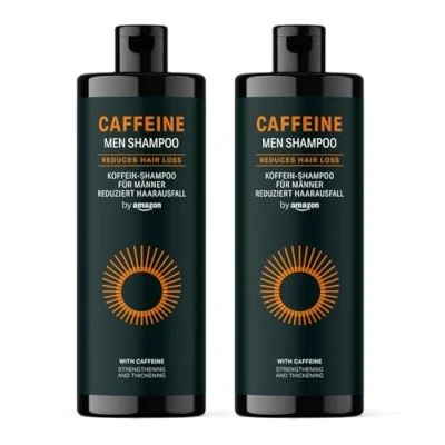 by Amazon Men's Shampoo with Caffeine 2 x 400 ml Hair need: helps reduce hair loss Strengthening and Strengthening - Gently cleansing shampoo with caffeine to strengthen hair and reduce hair loss. HOW TO USE Apply to wet hair and scalp to create foam, then rinse thoroughly. Vegan formula: contains no ingredients or by-products of animal origin. Dermatologically tested: suitable for all skin types Formula free from: silicone and microplastics