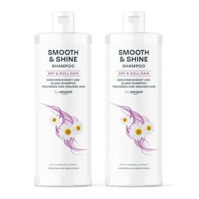 by Amazon Smooth and shiny shampoo, 2 x 400 ml Hair Type: For dry and brittle hair Moisturising and shiny: shampoo for brittle hair with chamomile extract, known for its moisturising effect. Hair will look smoother and shinier. HOW TO USE Apply to wet hair and scalp to create foam, then rinse thoroughly. For best results, use it with our Smooth and Shiny Conditioner from by Amazon. Vegan formula: contains no ingredients or by-products of animal origin. Dermatologically tested: suitable for all skin types Formula free from: silicone and microplastics