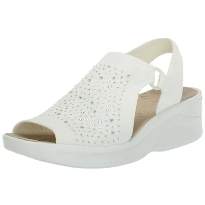 BZees Womens Star Bright Slingback Wedge Sandal White Sparkle 9.5 M