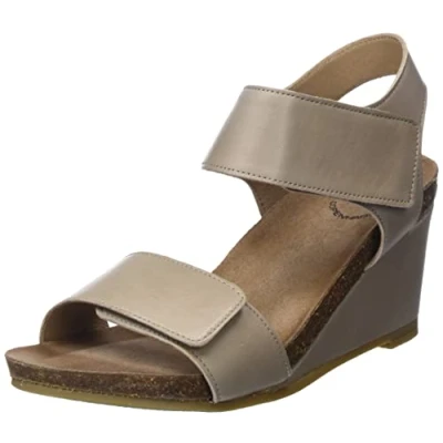CA'SHOTT A/S Women's Casalberta Velcro Sandal Leather Heeled, Taupe, 7.5 UK