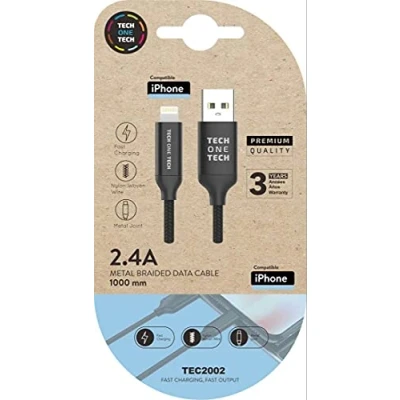 Cable USB 2.4 Tech One Tech Braided Nylon Type Apple Micro USB Length 1 m Black