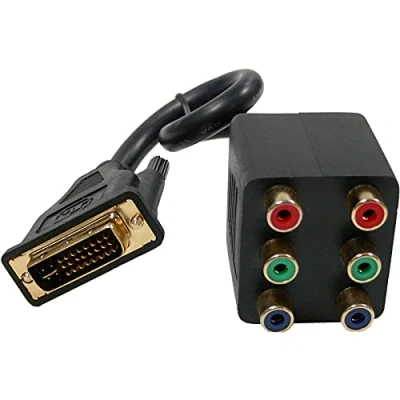 Passive duplicating cable of DVI-I to 2 x RGB. It is an RGB duplicator that has a DVI-I Male connector at one end and a module with 2 sets of RGB connectors (2 sets of 3 x RCA-Female) at the other end. Each set of RGB connectors has a blue, red and green RCA connector. The correct operation in certain environments is not guaranteed. It does not pretend to be a signal duplicator but a duplicator of RGB connector.