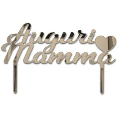 Golden plexiglass cake topper with the words "Best wishes mom" and decorated with a heart. Perfect for cakes and cakes on birthdays and Mother's Day. Letter size: 16 x 6 cm Made from mirrored plexiglass Ideal for decorating your cake, Manufacturer: Graziano