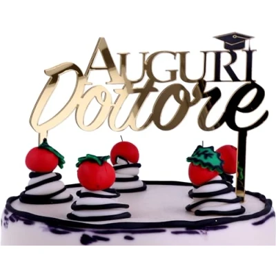 Glittering plex cake topper with the words "Doctor's Greetings", ideal for placing on the cake to celebrate the new graduate. The lettering is supported by an extension for easy attachment. Size: 12 x 17 cm Made from mirrored plexiglass Ideal for decorating your cake, Manufacturer: Graziano