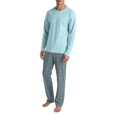 CALIDA Relax Streamline Men's Long Pyjamas 100% Cotton, Turquoise, 58 60