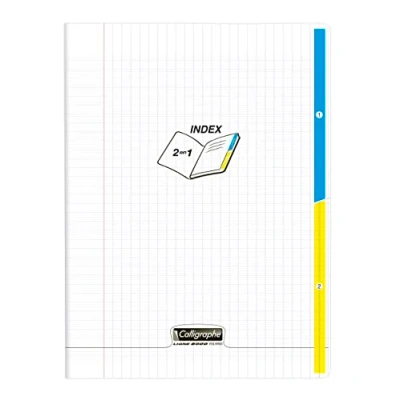 CLEAR POLYPRO COVER: Tough, tear-proof and waterproof. No need for notebook covers! MULTI-MATERIAL INDEX NOTEBOOK: for a lighter bag, 2 indexes = 2 different materials PAPER: superfine white vellum 90 g/m², superior strength and opacity MAXI FORMAT: school format, ideal for sliding or sticking A4 sheets (21x29.7 cm) distributed in class PEFC CERTIFIED: for sustainable forest management Made in France