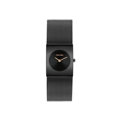 2-HAND QUARTZ MOVEMENT FOR WOMEN – This watch from the CK PULSE collection offers precision and minimalist design for a contemporary feminine style with Calvin Klein’s signature touch 21MM BLACK IP STAINLESS STEEL CASE – Slim 6.9 mm profile delivers an iconic and modern look, reflecting the current trend for more compact watches BLACK STAINLESS STEEL SUNRAY DIAL – Minimalist dial with a radiant finish that brings light and sophistication to the Calvin Klein design BLACK IP STAINLESS STEEL MESH BRACELET WITH CLASP CLOSURE – Guaranteed comfort with a sleek, flexible bracelet offering a modern and elegant look 3 ATM WATER RESISTANT – Ideal for everyday wear and accidental splashes without sacrificing style
