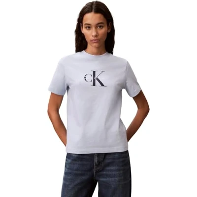 Calvin Klein Women’s Short Sleeve Round Neck Hero Classic Monologo T Shirt, Blue (Breezy Blue), XXS