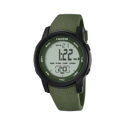 Calypso Unisex Digital Watch with LCD Dial Display and Green Plastic Strap K5698/4, Lcd/Green,