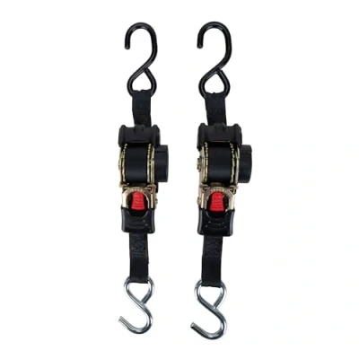 Camco 50033 Retractable Transom Tie Down Straps, 1 Width, 6’ Dual Hooks, Black