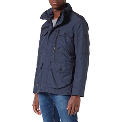 Water and dirt repellent Recycled polyester upper Roll-up hood in stand-up collar Drawstring waist and hem Two inner pockets