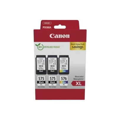 This PG-575XL / CL-576XL multipack contains 3 original ink cartridges:2 x PG-575XL (black 15 ml )1 x CL-576XL (colour 12.6 m l ) As well as stocking the popular Canon, Brother, Epson and HP brands, amongst others, you can also opt for the 123ink compatible versions. Our own-brand ink cartridges and toner cartridges contain more ink than the original brands and will save you money! Not to mention that all of our 123ink products also come with a 100% lifetime guarantee. On top of selling printers and printer consumables, we also have tapes, labels, and an extensive range of office supplies.