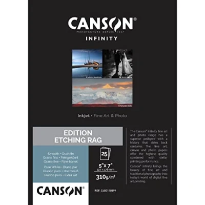 CANSON Infinity Edition Etching Rag Smooth 310gsm 12.7x17.8cm Paper, Digital Fine Art Reproduction, 25 Pure White Sheets, Ideal for Professional Photographers