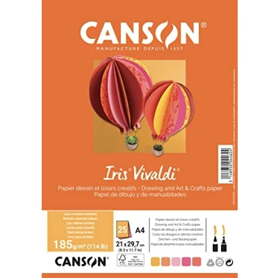Canson Iris VivaldiA4 Pack of 25 Sheets 185 g/m² Assorted Colours Yellow/Pink/Red