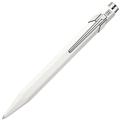 Classic ballpoint pen 849 Popline by Caran d'Ache with matching case With its hexagonal shape, the ballpoint pen has a timeless design The casing is made of aluminium and has a matt white lacquered surface Thanks to its push mechanism, the lead opens easily The ballpoint pen is equipped with a black Goliath refill and has a line width of M