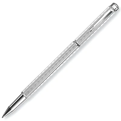 Rollerball pen/838.286 Body and cap made of solid brass, silver-plated, rhodium-coated Lifetime international guarantee Refills: Roller cartridge, fine, blue or black Swiss made