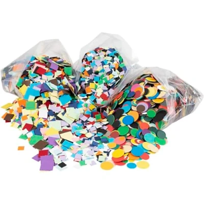 Content: 1 assortment Package dimensions (LxWxH): 28.00 x 19.00 x 12.00 cm Well known quality from Creativ Company Assortment containing 2 bags each of 4 different card mosaic mixes in a variety of different sizes and shapes (round, triangle, square) Total about 80000 pcs.