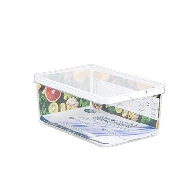 PERFECT FRIDGE ORGANIZER: Thanks to the CARE + Protect Smart Food Container, now you can tidy up your fridge place and make it more spacious VERSATILE STRUCTURE: The lid is reversible and can be used both sides. When turning the lid 180°, it can either be used for more space in the box or for a perfect stackability EASY OPEN & CLOSE: With an ergonomic handle, the container can be opened and closed in a quicker way, make the use more comfortable HUMIDITY CONTROL: The tray with its small holes allows fluids to drain off the food, protecting food from moisture and thus keeping the food fresh longer TRANSPARENT DESIGN: Thanks to the elegant and transparent design, you always have a clear view on what is inside, gives a clear and clean look and feel