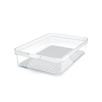 PERFECT FRIDGE ORGANIZER: Thanks to the CARE + Protect Smart Food Container, now you can tidy up your fridge place and make it more spacious VERSATILE STRUCTURE: The lid is reversible and can be used both sides. When turning the lid 180°, it can either be used for more space in the box or for a perfect stackability EASY OPEN & CLOSE: With an ergonomic handle, the container can be opened and closed in a quicker way, make the use more comfortable HUMIDITY CONTROL: The tray with its small holes allows fluids to drain off the food, protecting food from moisture and thus keeping the food fresh longer TRANSPARENT DESIGN: Thanks to the elegant and transparent design, you always have a clear view on what is inside, gives a clear and clean look and feel