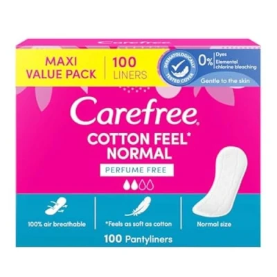 Fragrance-free cover, soft to the touch thanks to cotton extract for a pleasant soft feel. The unique combination of four breathable layers ensures long-lasting freshness throughout the day. Carefree cotton feel panty liners stay perfectly in place. Whatever you do, whatever briefs you wear, they won't shift. Your briefs are perfectly protected all day long. Colour: RAL 7016 - 1 Pack of 100