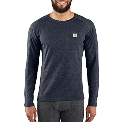 Carhartt Men's Base Force Heavyweight Polyester Wool Crew with Zip Pocket Layer Top, Navy Heather, L
