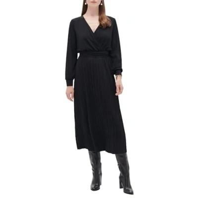 This elegant black rapha dress is crafted from soft and comfortable jersey fabric, offering the wearer a perfect blend of style and comfort. The V-neck highlights the neckline in a subtle and seductive way, while the belt emphasizes the waist, creating a flattering silhouette. The pleated skirt adds a touch of femininity and movement to the outfit, giving it a timeless charm. This dress is an ideal choice for special occasions, elegant evenings or even for a sophisticated day wear. - Midi dress with a flowing cut - Wrap collar - Long sleeves - Tone on tone belt